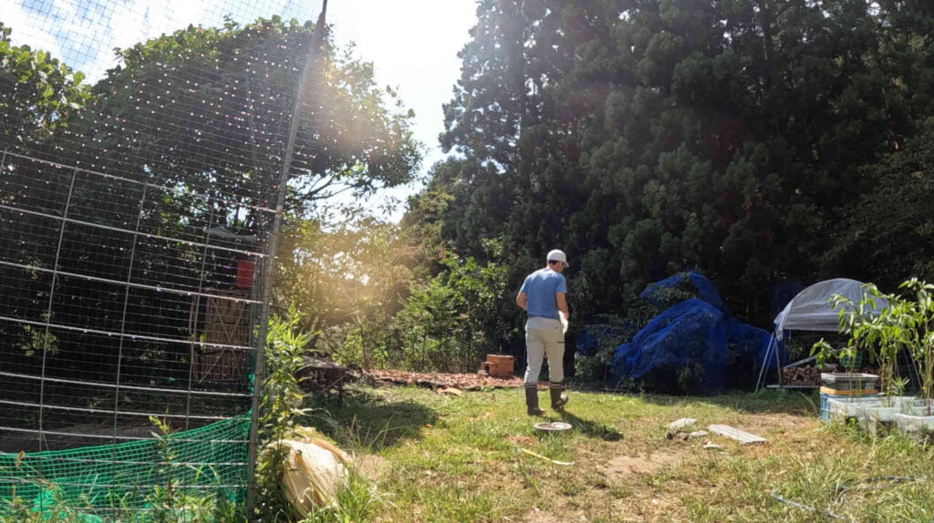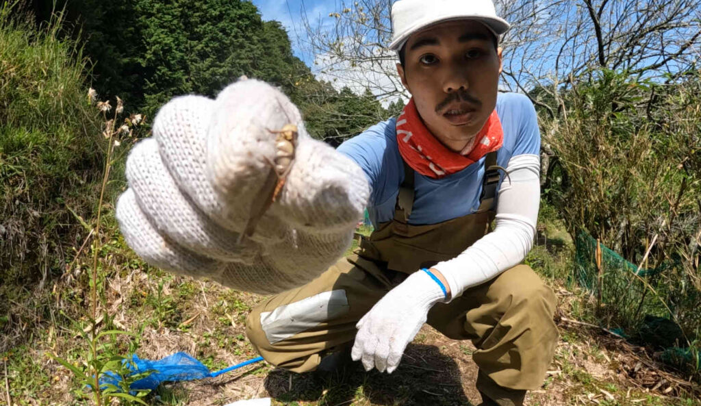 お次はたんぱく質を確保すべく、農地の虫を採集していきました。