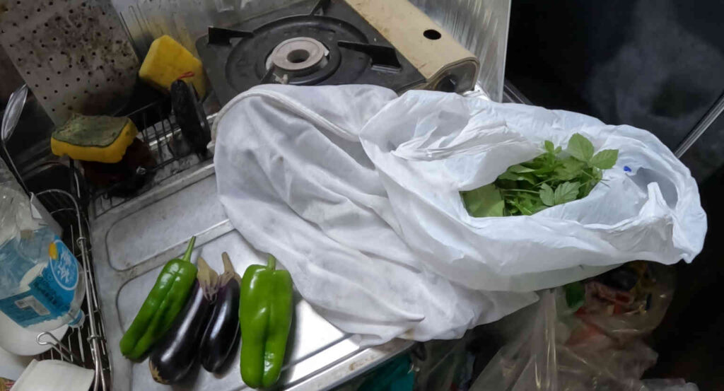 あと畑のナスとピーマンも収穫し、これで今回の全ての食材が準備できました。