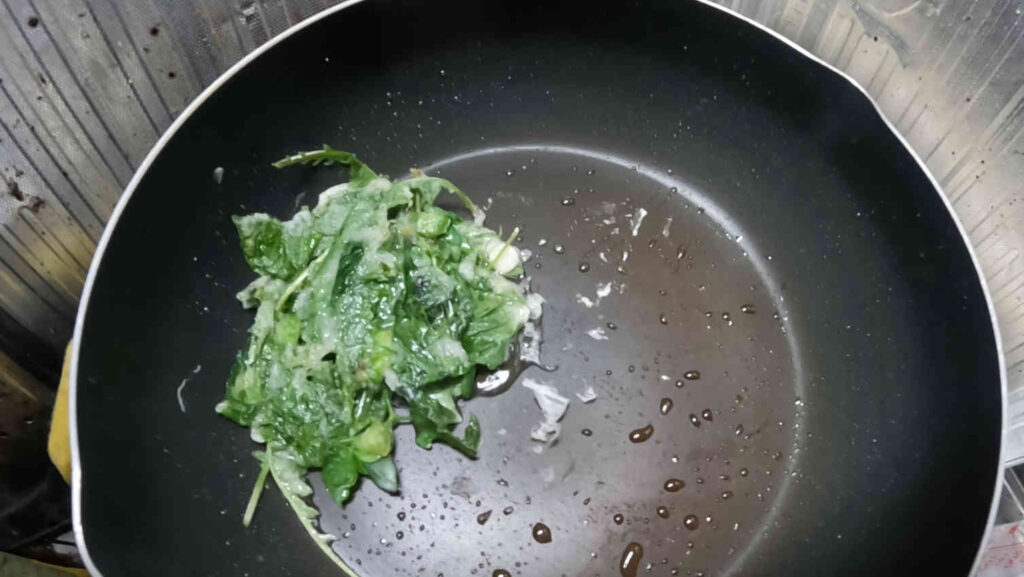 野草は一緒くたにして、薄力粉を溶かした衣で天ぷらにします。……が、衣と油をケチり過ぎた&野草をとりすぎたせいで、なんだかめちゃくちゃ中途半端な感じになってしまいました。