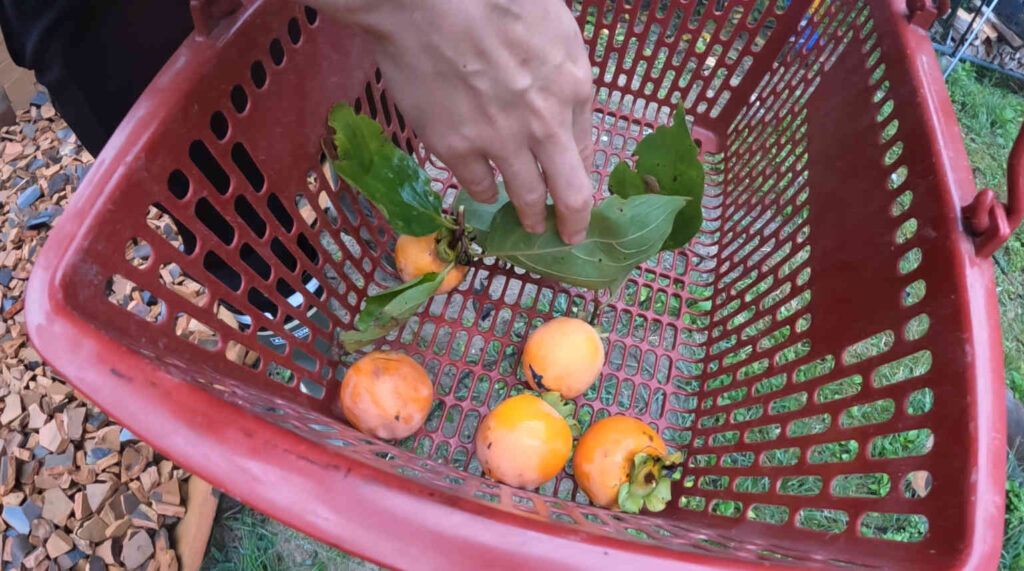 12日目の朝は、前日に干し柿がカビて全滅してしまい朝に食べる物がなかったので、慌てて柿を収穫していくことから始まりました。