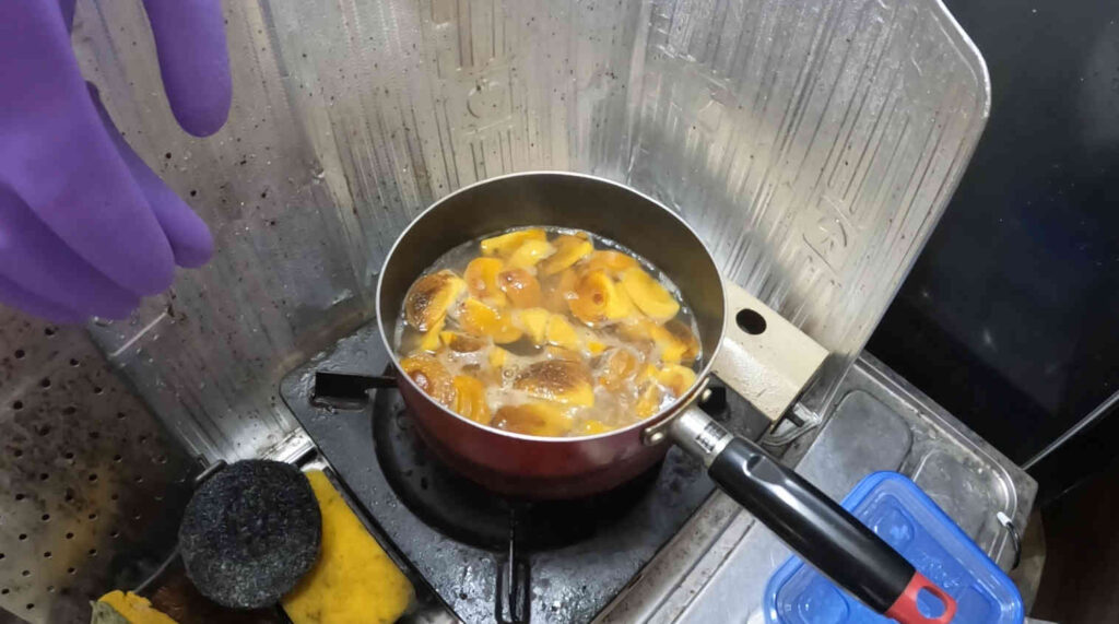 もはや干し柿を作る自信を失ってしまった僕は、無難に甘露煮にしてそれを冷蔵庫で保存することでカビ対策とすることにしました。