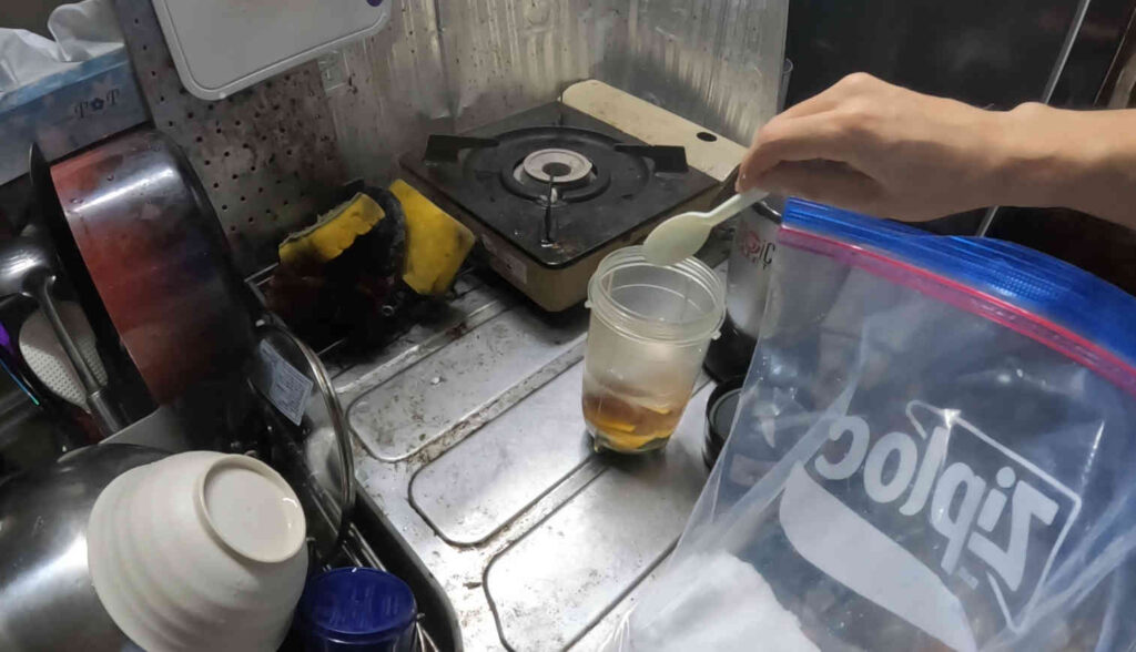 水180mL、そして砂糖スプーン3倍を投入し……