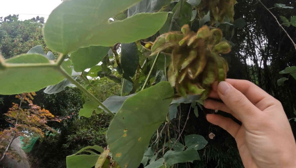 ですが、前回はどうやらまだ豆が大きくなっている途中だったのか、最近になってあらためて葛豆の様子を見ると若干肥大しているように感じるのです。