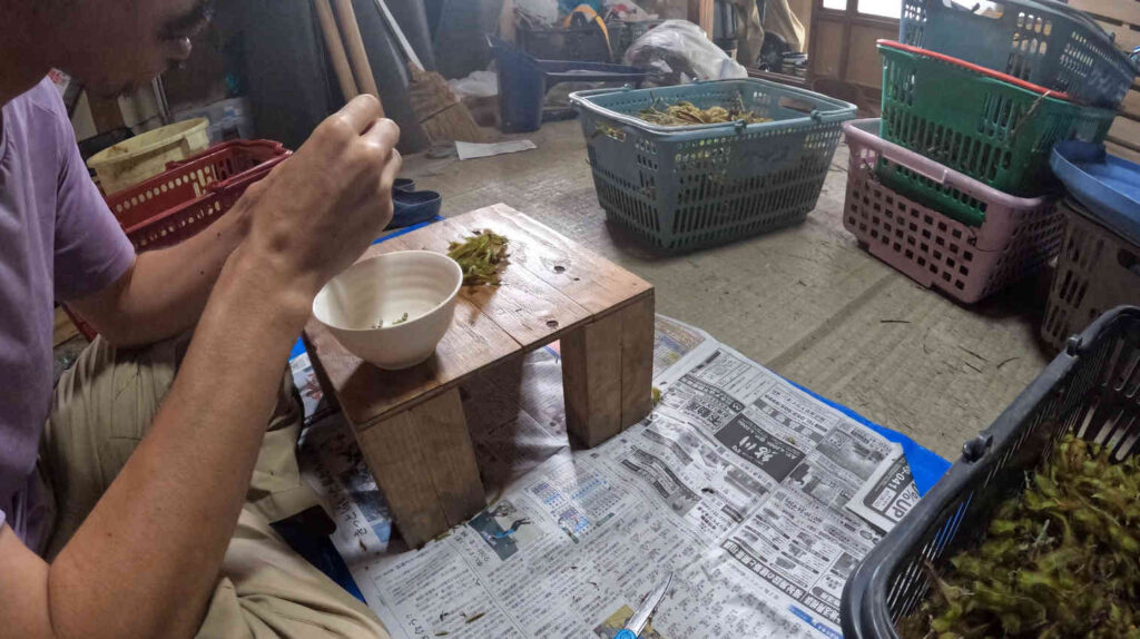 早朝からご飯も食べずに体を動かしてだいぶへこたれたので、朝ご飯の柿とお茶を頂いたのですが、ここで以前から仕込んでいた柿の葉茶がたぶん完成したので飲んでいくことにしました。