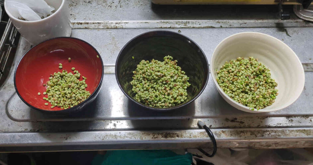 前回、トータル3日間をかけて土地中のクズ豆を回収していった結果、ようやっとお茶碗1杯分のクズ豆をゲットすることができました。