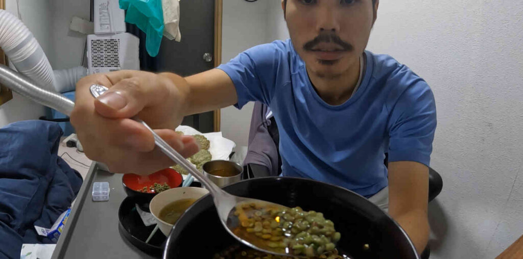 今回はいよいよ、念願だったクズ豆でお腹いっぱいになるため、ゲットしたクズ豆全てを一気に使って料理をして食べる17日目の様子をお伝えしていきます。