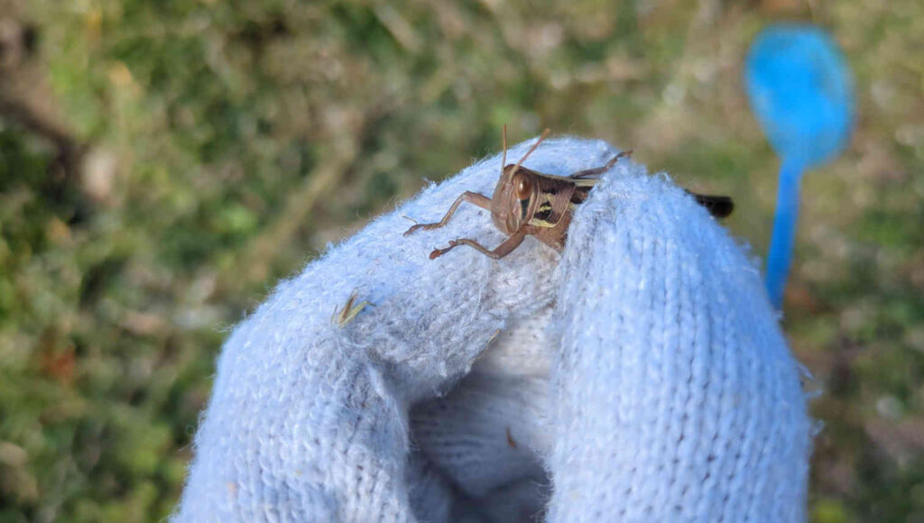 その後農地・飛び地の方に出てバッタの採集をしていきました。
