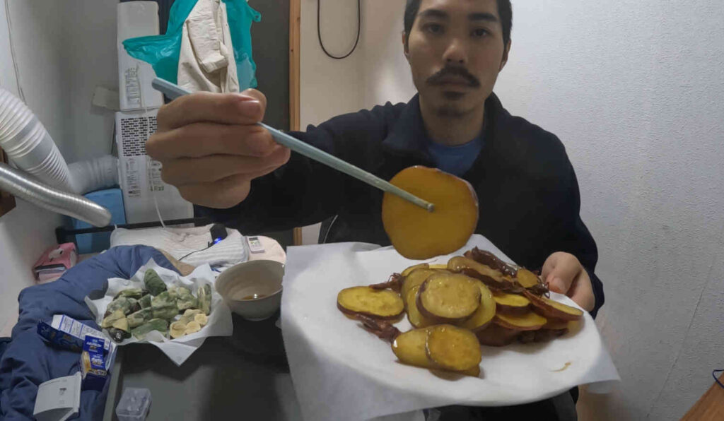 チャレンジ終了まで残り3日となった29日目、今回は残った食材の一つサツマイモをぜいたくに使って腹をパンパンにしていった一日の様子をお伝えしていきます。