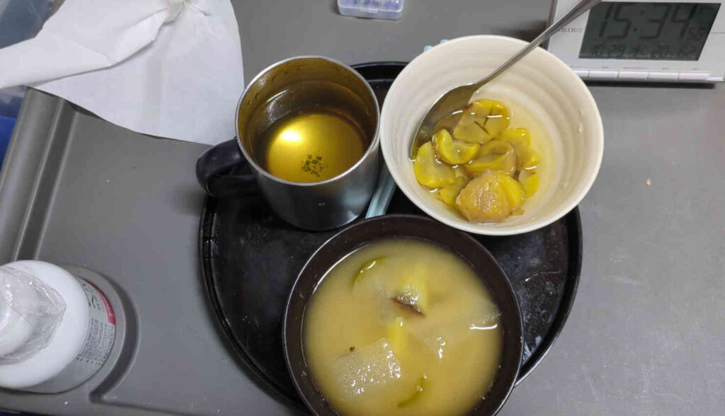 この日はお昼にサツマイモを腹パンパンに食べた上に、夜ご飯の味噌汁にまでサツマイモが入っていて、更に食後の甘味まであるということで、かなり満足のいく食事を楽しめた一日になりました。