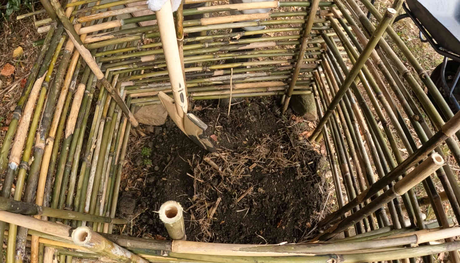 竹とシカの糞でコンポストを作り、新しく作った畑に使う分の肥料を賄っていく計画、今回はその第二回になります。