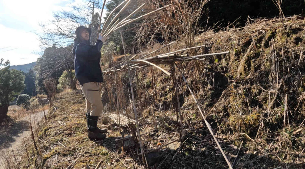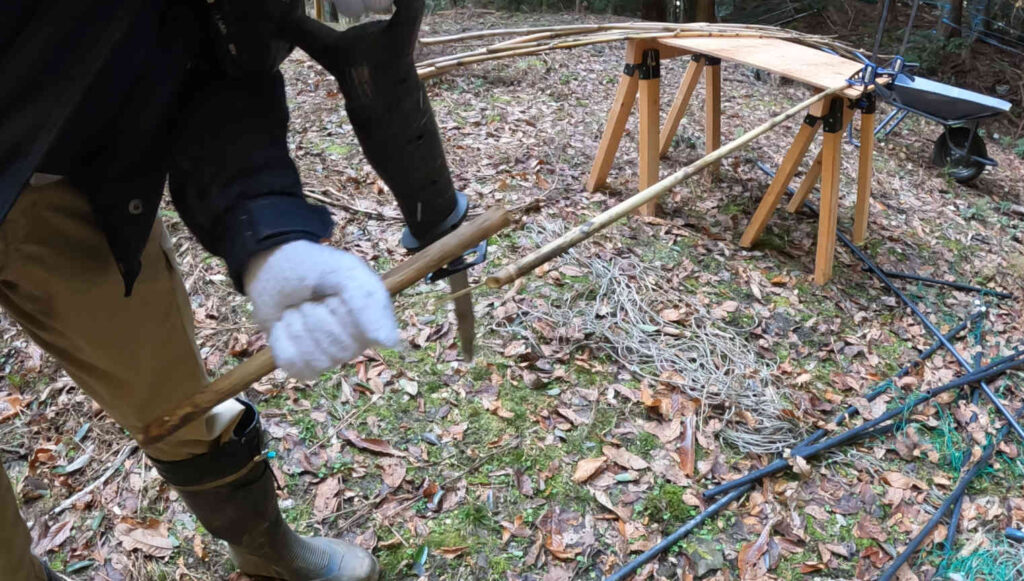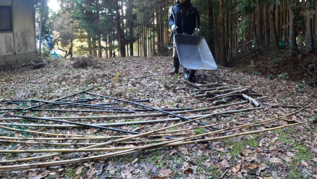 杭として使えるよう40~50㎝ぐらいに竹をカットし、資材の準備は完了です。