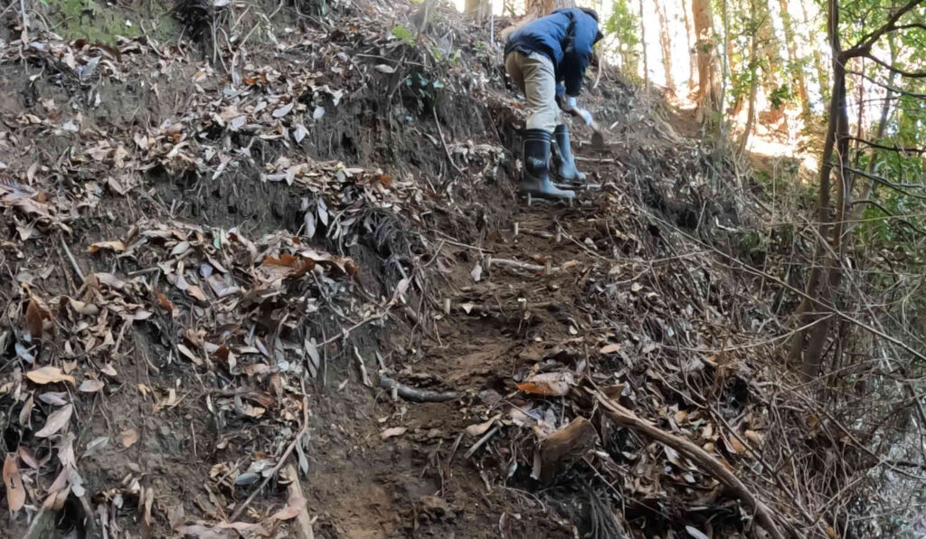 そのため今回は、斜面でも安全に上り下りできるように階段を作成して、崖際の道開拓を完了するまでの様子をお伝えしていきます。