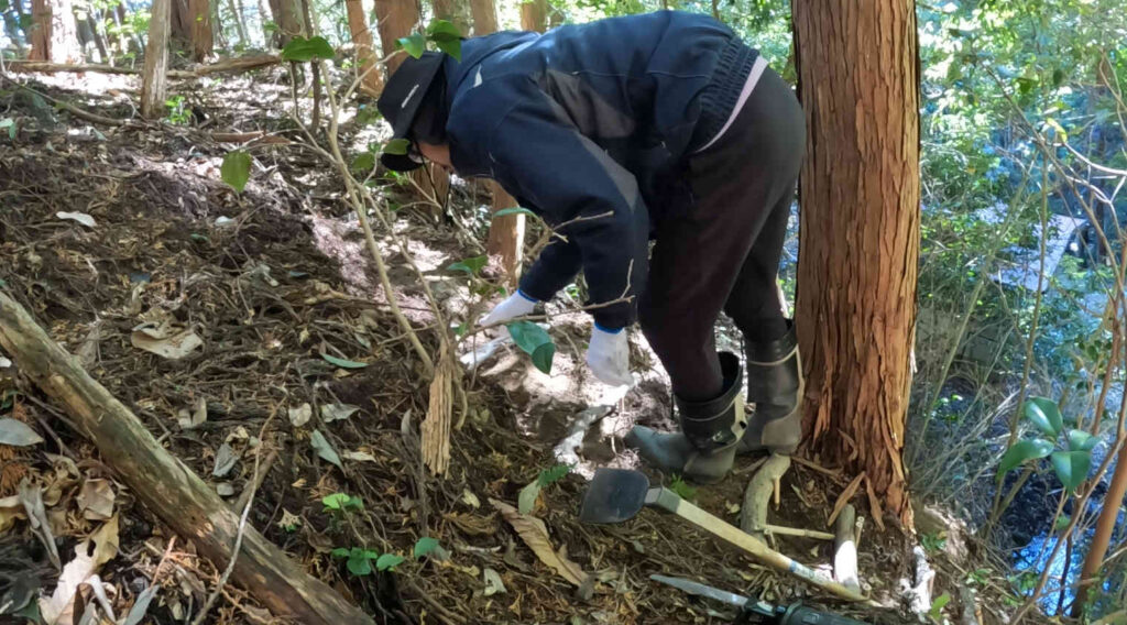 それを崩れやすい道の縁に設置し、土留め代わりとして補強していきました。
