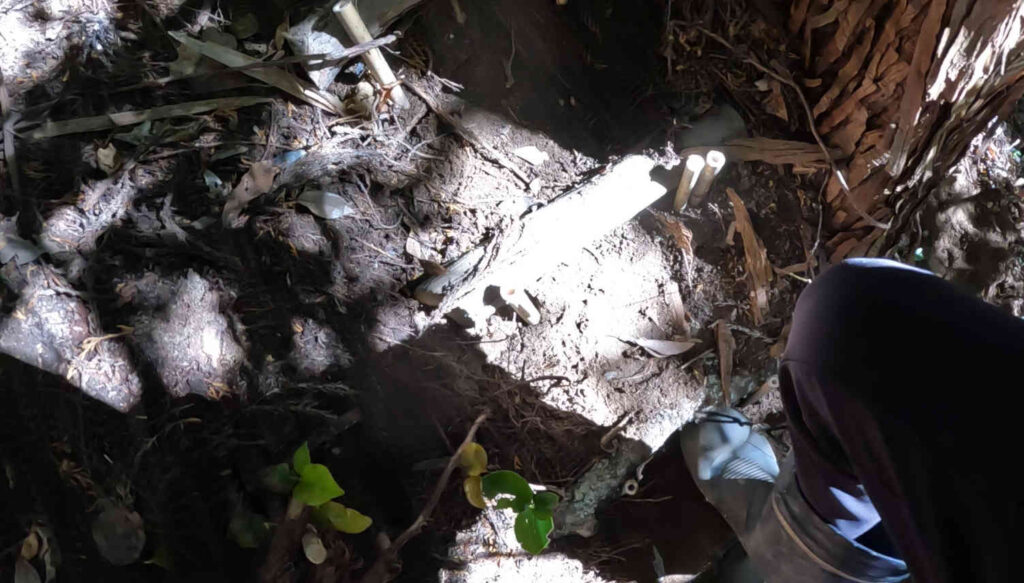 長い竹を数本持っていき、後でカットして杭として使用します。