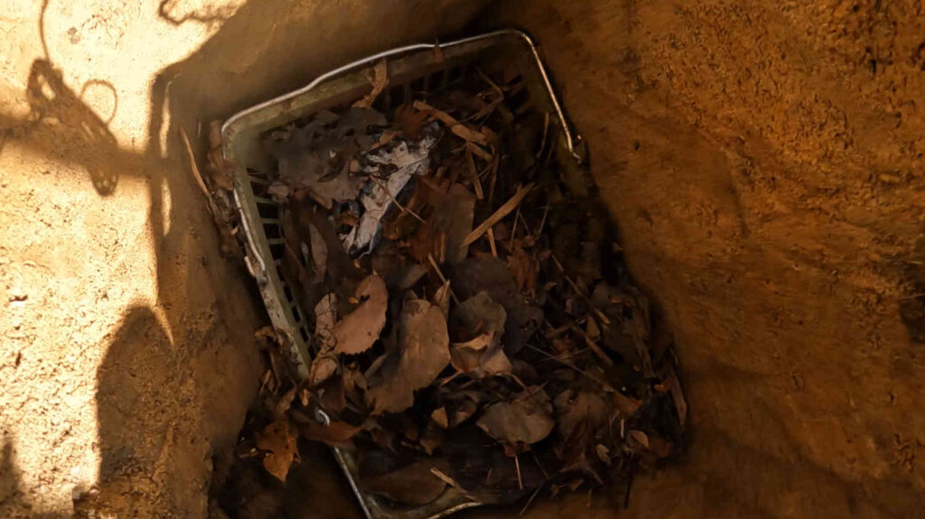 それを更に取り除くと、種芋を入れてあるかごが見えてきました。