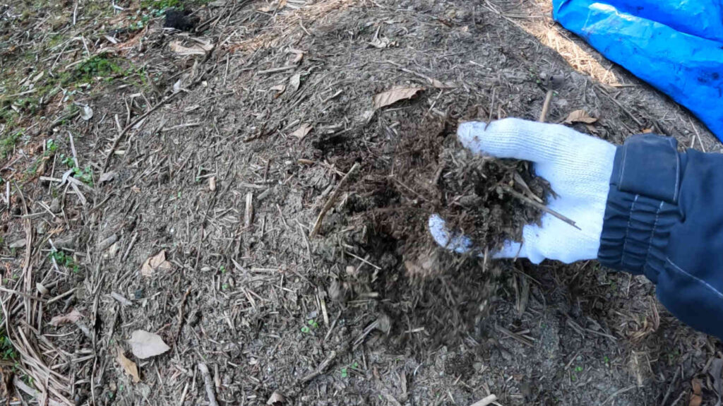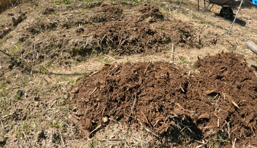 畑の肥料には、毎度おなじみコンポストトイレから出た、半年かけて発酵させた堆肥を使っていきます。