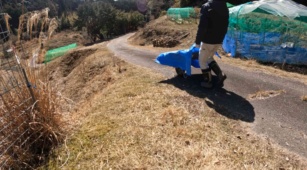 長距離かけて必要分を一輪車で運び……