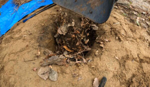 畑の肥料には、毎度おなじみコンポストトイレから出た、半年かけて発酵させた堆肥を使っていきます。