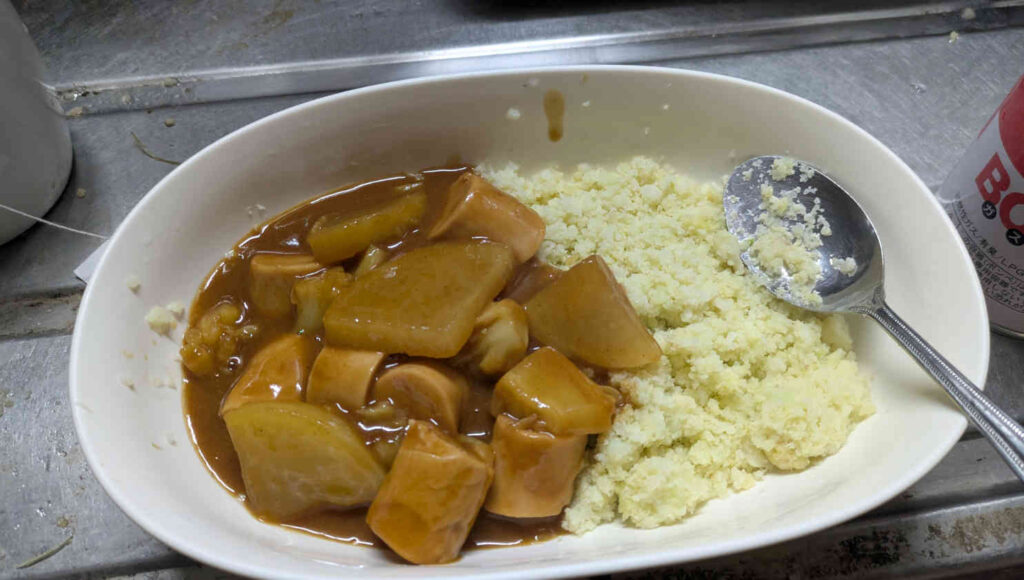トータルとして、「カリフラワーを普通に食べられる人なら問題なく食べられる」と言った評価で、食べ終わった後の満腹感も意外に結構あったので、それこそ「低カロリーのダイエット飯」としてコメの代わりに使うのであればなかなか実用的だと思いました。