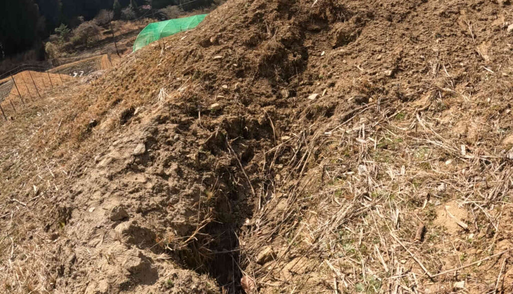 平坦な部分が少ないため、畑にしたり建物を建てたりするには不向きですが、日当たりが抜群によく水はけも良い土地のため、果樹園にするにはかなり良いのではないかと思います。