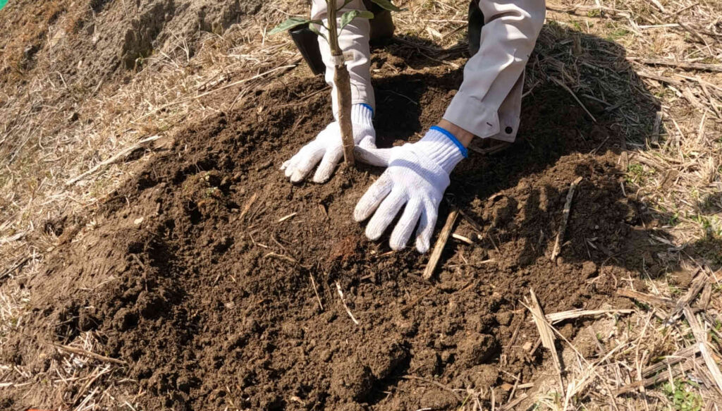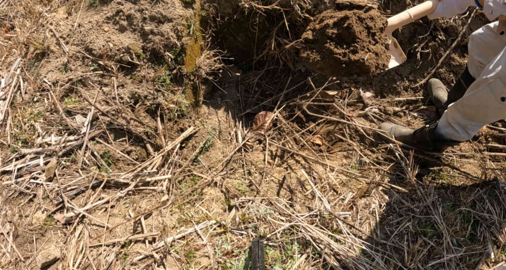 なので今回は、実際に苗木を植えるための穴を掘り、土づくりをし、植えて獣対策を施すまでの一連の様子をお伝えしていきます。
