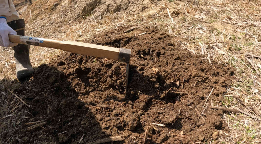 鍬でしっかりかき混ぜれば……