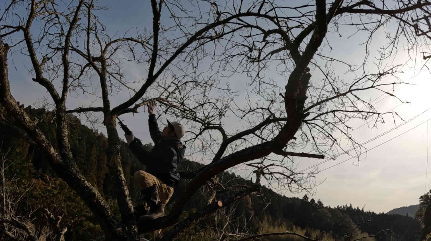 片側の枯れ枝を一通り剪定し終わったら、今度は反対側から選定を進めていって……