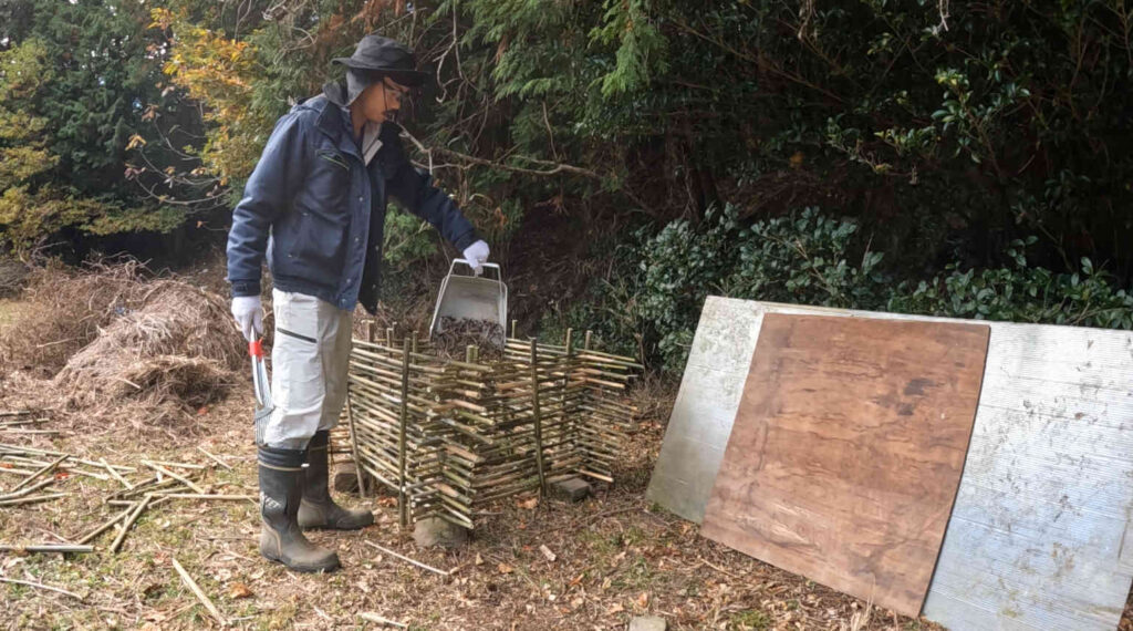 後は今後継続してシカ糞を回収して積み重ねていき、一杯になったら次は堆肥の切り返しをして……と言った感じでどんどん発酵させて堆肥を完成させていく流れになります。
