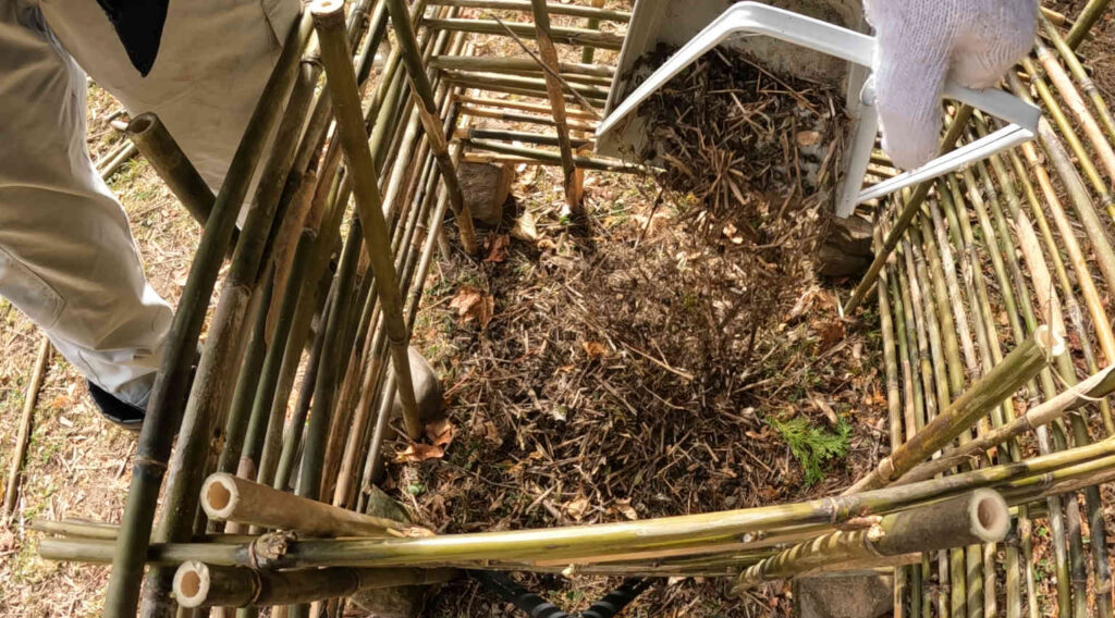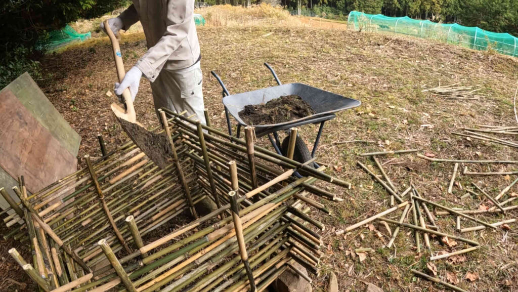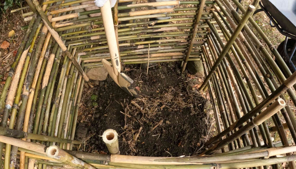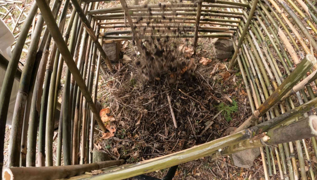 竹とシカの糞でコンポストを作り、新しく作った畑に使う分の肥料を賄っていく計画、今回はその第三回になります。