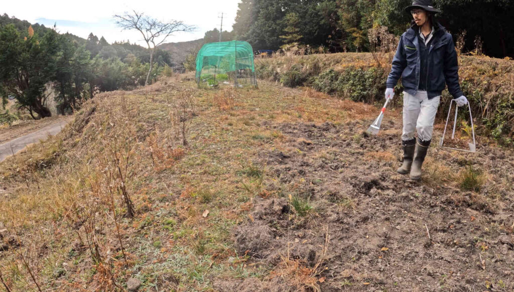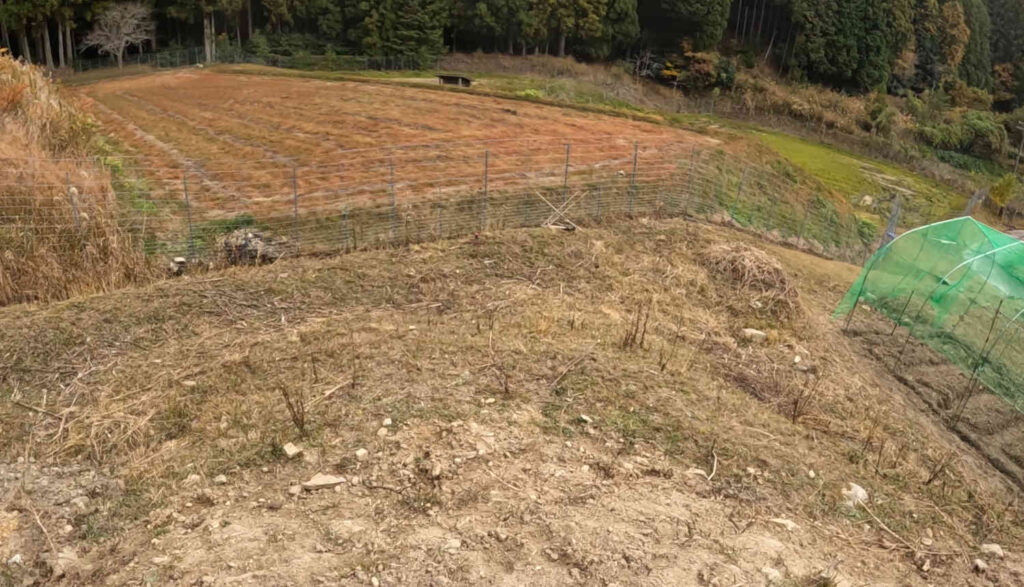 農地上段の糞を集め終わったら続いて農地下段の糞を集めます。