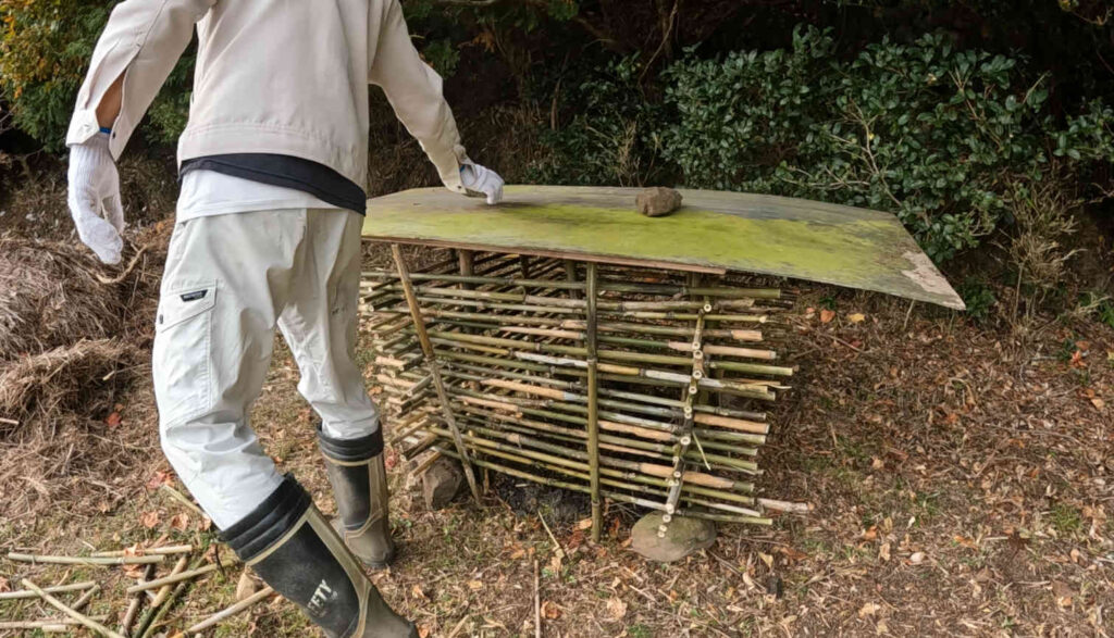 今回は農地に大量に転がっているシカ糞をたい肥にするため、開拓で出た竹を利用しつつコンポストの準備を進めていった様子をお伝えしていきました。