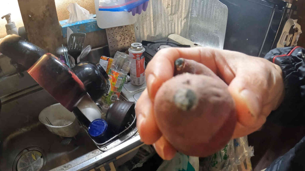 芋は全部で3つあったのですが、残りの2つも黒カビっぽいのが生えていたのでやむなく破棄することとなりました。もったいない……。