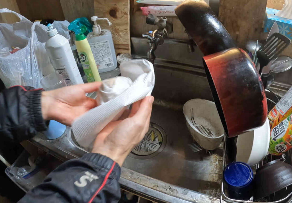 まず、前回は1重だったキッチンペーパーを2重にまいて……