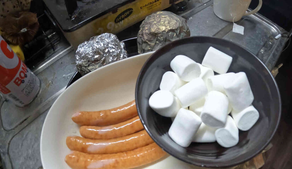 ついでBBQの食材としてウィンナーとマシュマロを用意し、これで食材の準備は完了です。