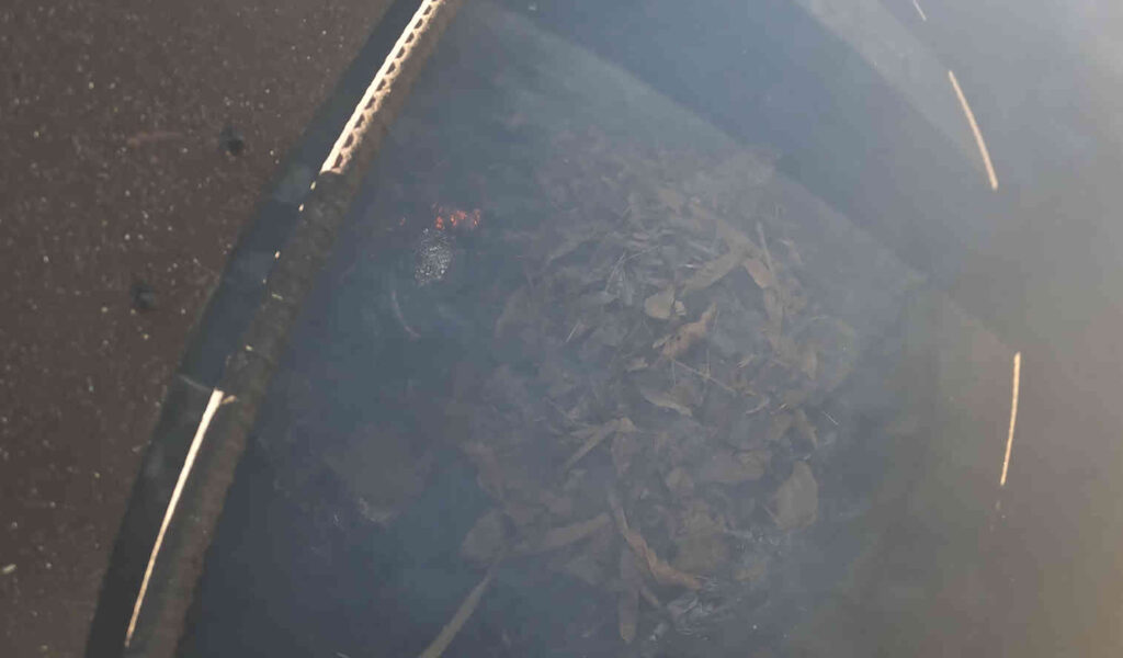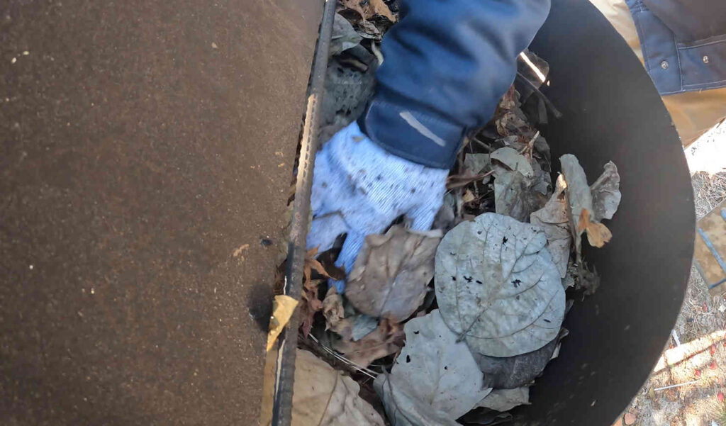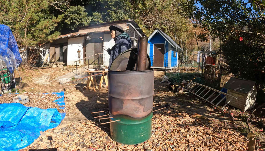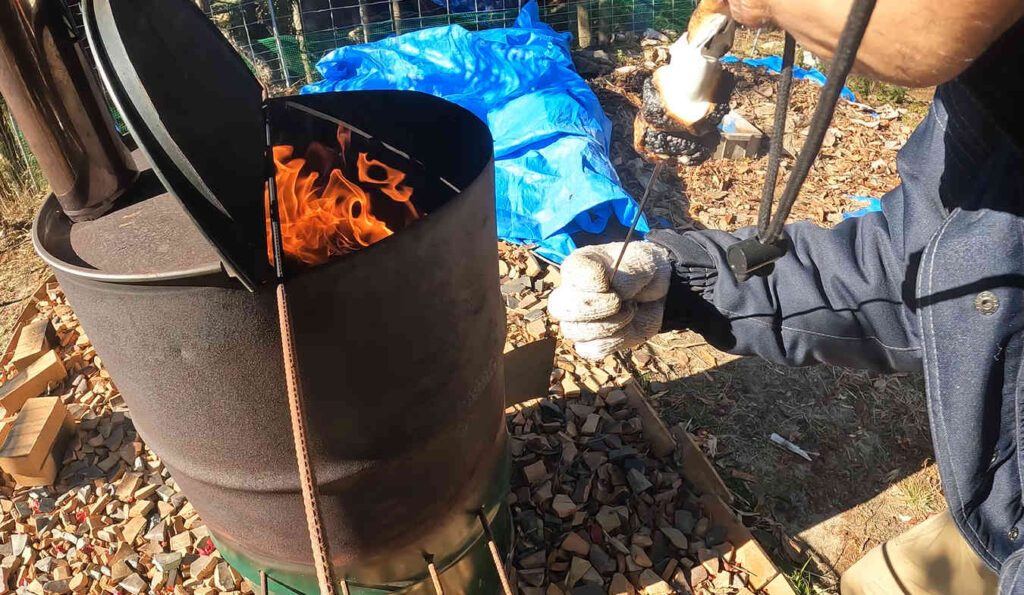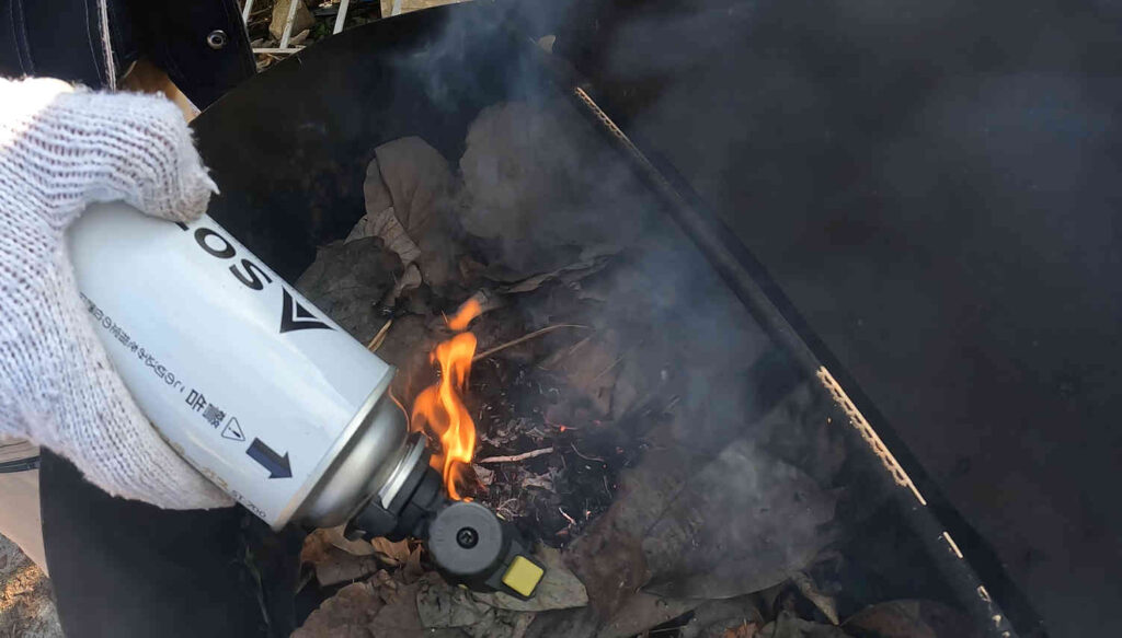 焼却炉の中にパンパンになるまで落ち葉を詰め込んで……