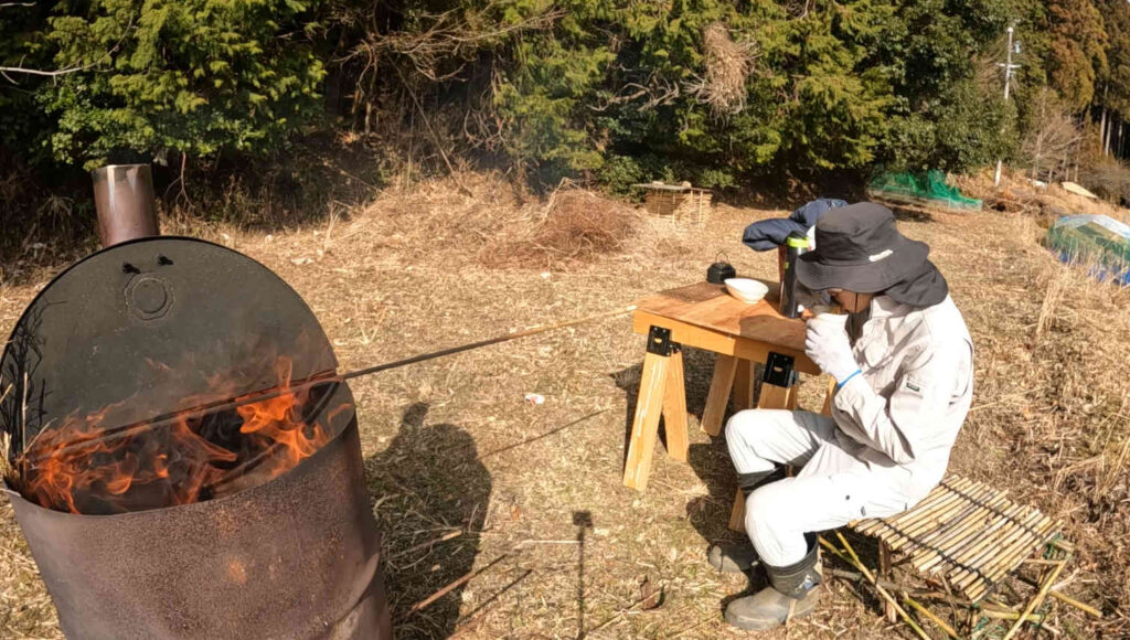 真冬ではありましたが、焼却炉の熱のおかげで快適にご飯を食べることができました。