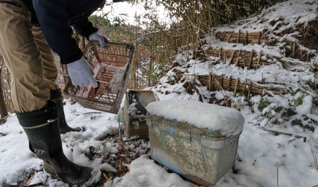 空き家の中は-3度と、外より若干ましな程度。これでは新聞紙に包んで段ボールに突っ込んでも、低温障害が起きてしまう可能性は高いです。