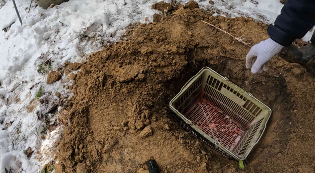 一体どうした物かと色々調べてみると、年間通して温度が安定している地下深くにジャガイモを埋めて保管するという方法があるらしいではありませんか。