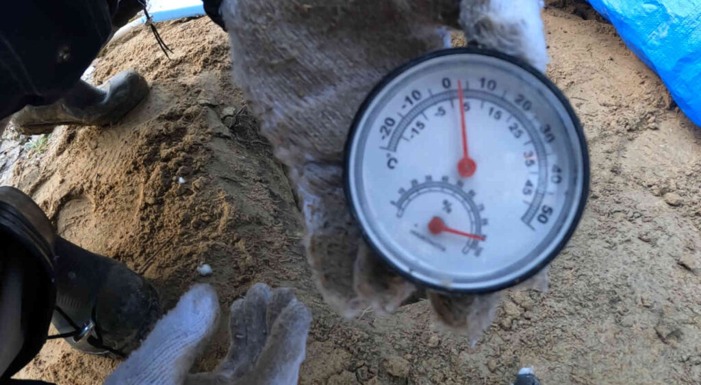 流石にこれだけ深い穴を掘ったのだから、1度でも空き家より暖かくなっていて欲しいものですが……果たして。