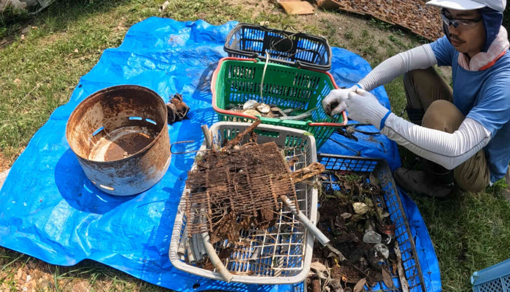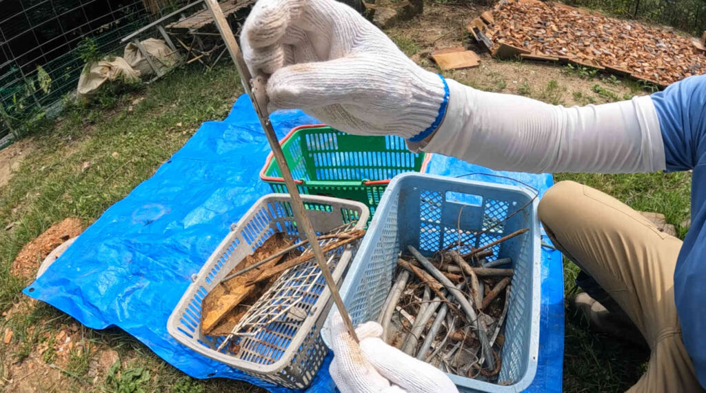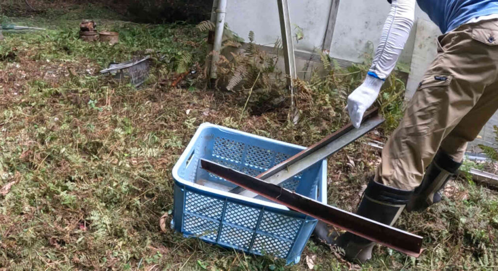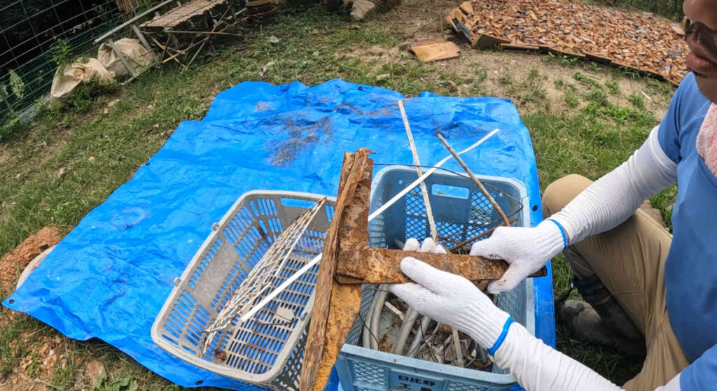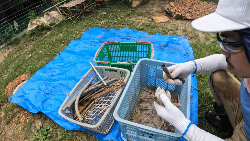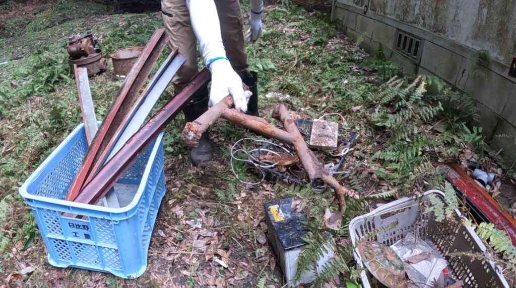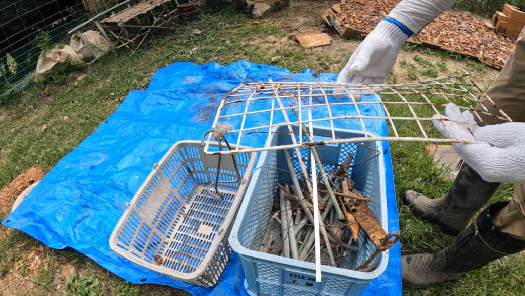 今回は溜まったゴミのうち、庭と裏庭から出てきた鉄くずゴミをかきあつめて分別作業をする様子をお伝えしていきます。