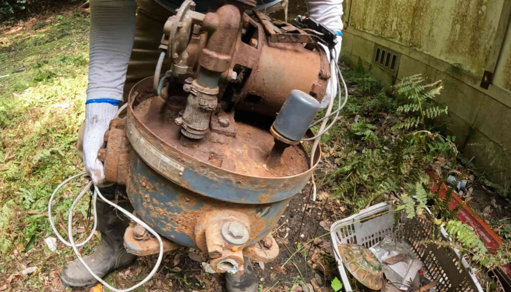 井戸ポンプにはモーターが使われており、このモーターが内部に銅が使われているため単価が高く、鉄くず買取の際にはかなり美味しい部品なのですが、今回は解体せずにこのまま鉄くずとして買い取ってもらえないか試してみる予定です。
