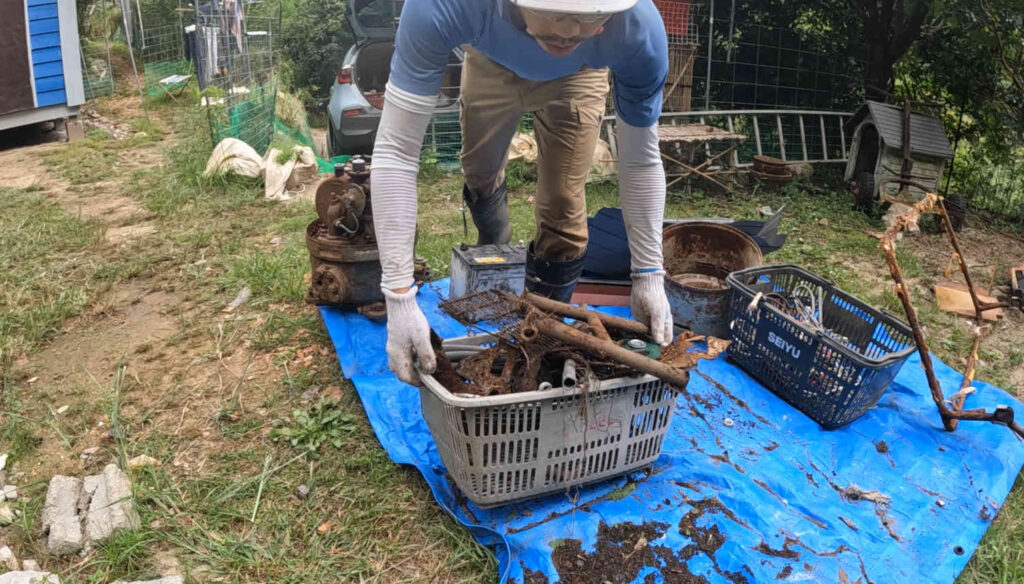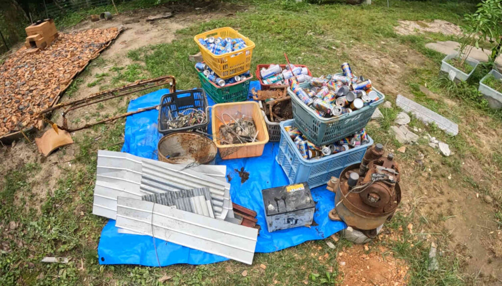1年間小屋暮らし開拓をする中で蓄えた、土地から出てきた金属ゴミを売却するため、土地中からかき集めて仕分けをするシリーズ、今回は後編になります。