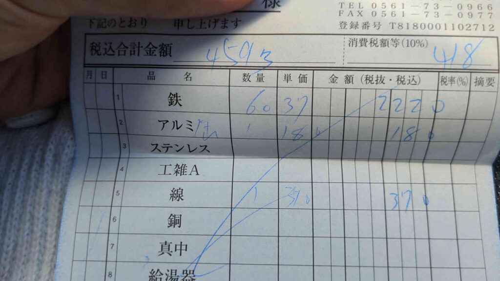 やはり鉄くずの重量が井戸ポンプで嵩増しされている分、鉄クズだけでも60kgあったのでそれで2200円もの買取になったのがデカいですね。