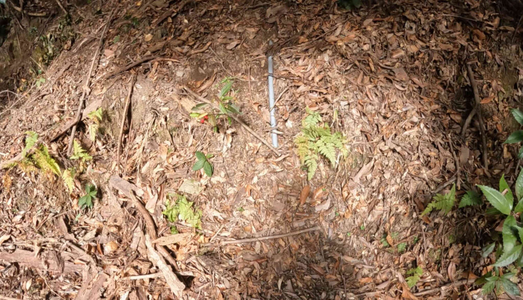 ただ、現在時期が中途半端特にやることが無く割と暇なため、今回はこの謎の塩ビパイプが本当に山の水を引いている物なのか、全体の姿はどのような物なのか、確認のため発掘していきたいと思います。