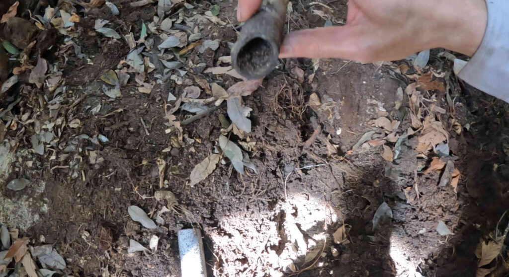 残念ながらパイプの中に山からの水が流れていないことは判明してしまいましたが、もしかしたら枯れた水脈が発見できるかもしれませんし、そもそも今回実はパイプ自体の回収を割と目的にしているので、発掘作業はパイプを全て掘り返すところまで続けていきたいと思います。
