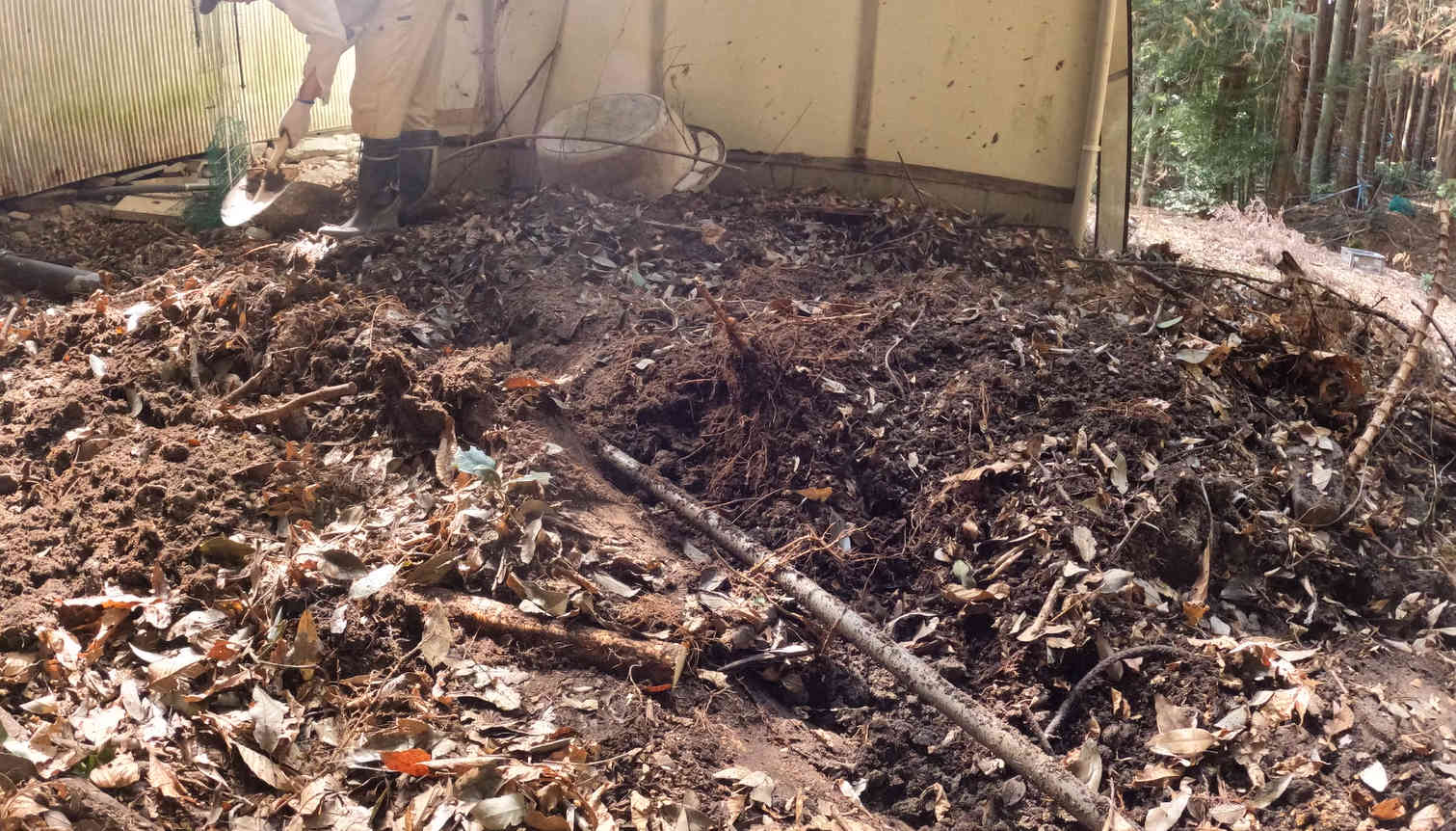 しかし、今回の作業はあくまで池復活を目的とした「裏庭全体の整備」ですので、ゴミを片付けたらそれでおしまいと言う訳ではありません。むしろやっと池の整備に取り掛かれるわけですから、ようやくスタートラインに立てたと言い換えることさえできるでしょう。