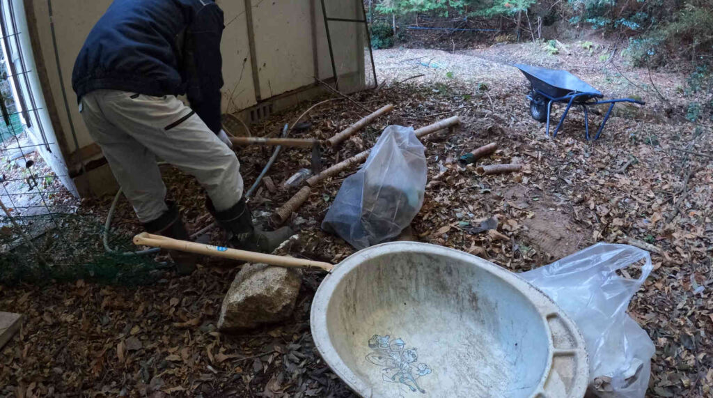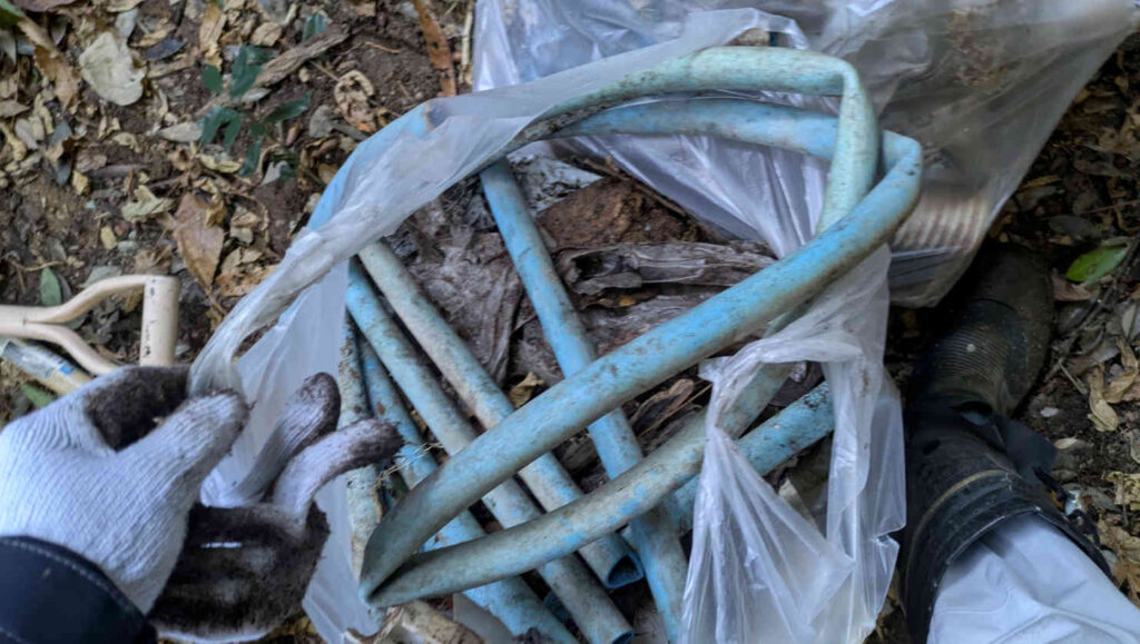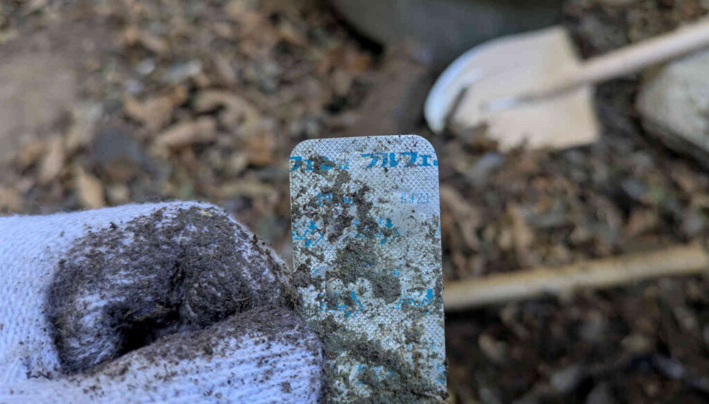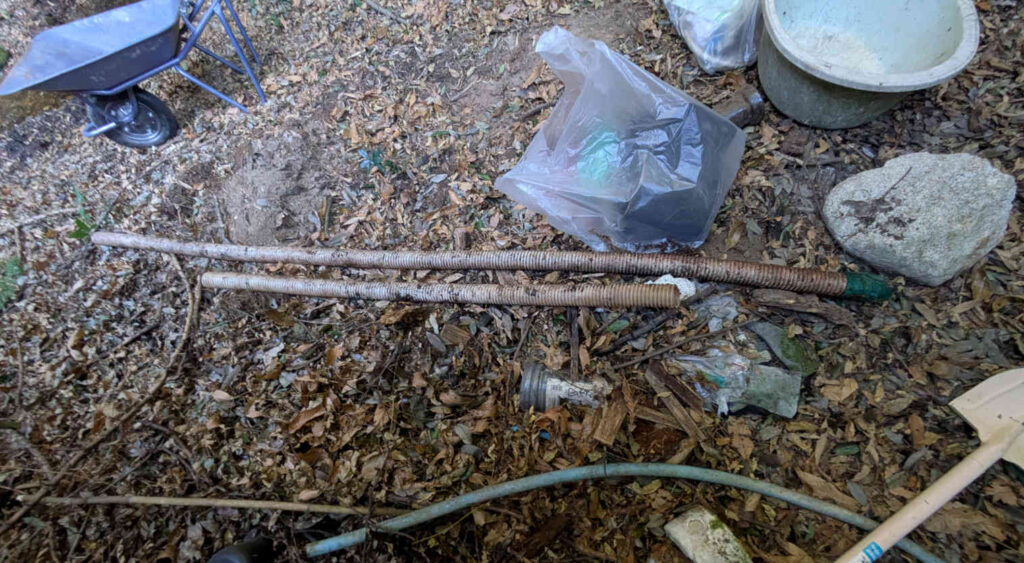 その後も、土地を開拓するために地面を掘るたびに出土するゴミにうんざりしつつ、今日まで地道に前住人の残置物処理を進めてきました。