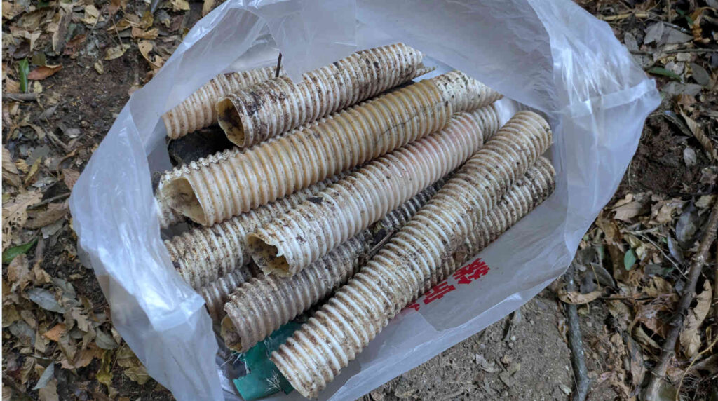 と言う訳で、作業小屋の裏手に捨てられていたゴミはたったこれだけでした。特に地面の中からゴミが連なるように出て来ることも無く、無事に片づけが完了しました。