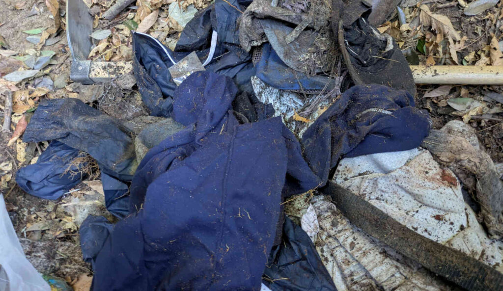 土地に埋まっているゴミとして割とあるあるな衣類関係も地面から出てきました。